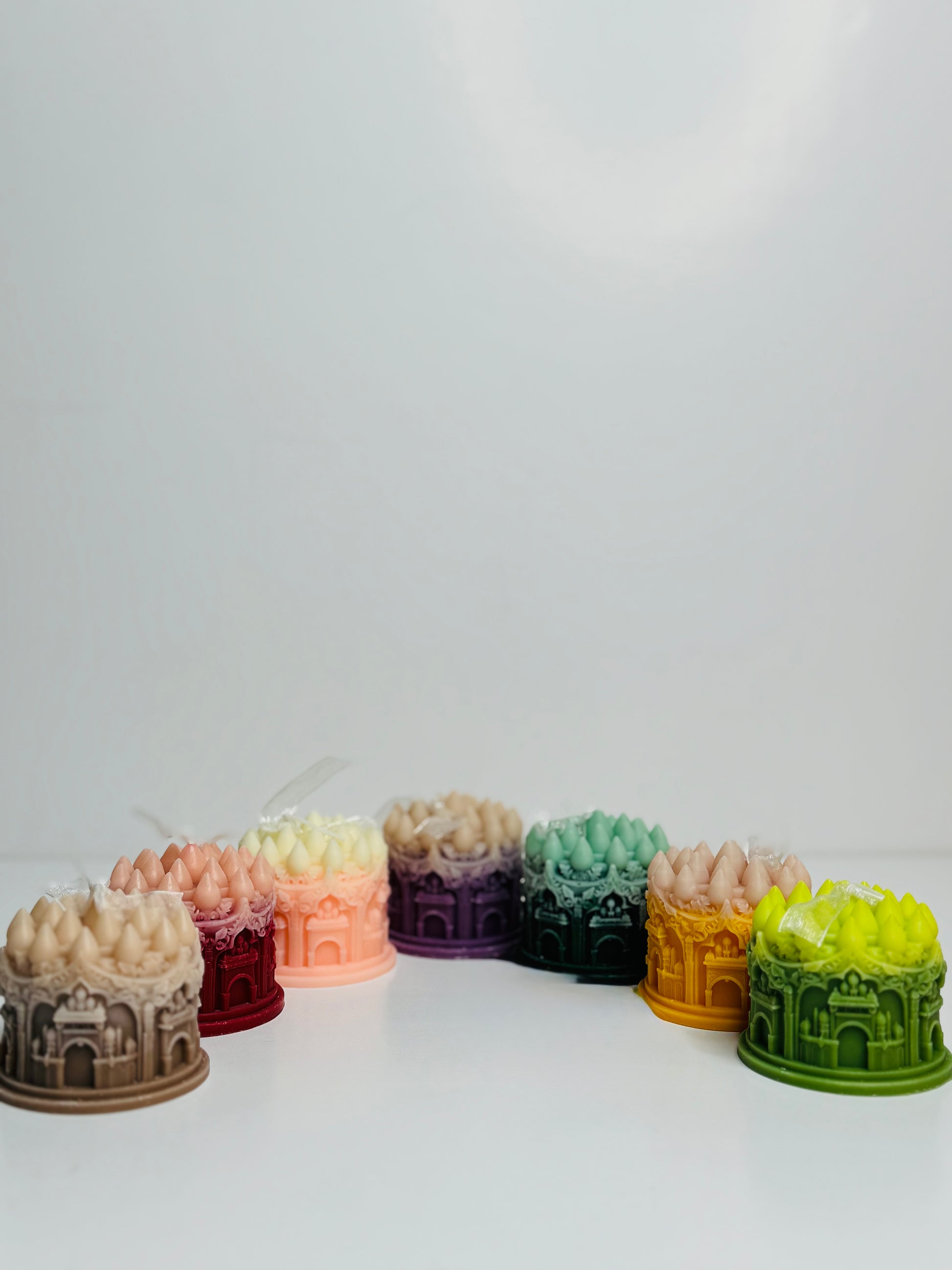 A sophisticated celebration of cultural heritage, the Crown of Colors candle features exquisite dome-inspired elements adorned with brilliant chromatic variations. Each meticulously crafted specimen represents architectural sophistication and cultural significance. This sculptural illumination piece serves as both a distinguished gift and an elegant decorative element, infusing spaces with noble character and vibrant aesthetics. Elevate your environment with this artistic luminary—a singular crown of exceptional craftsmanship.