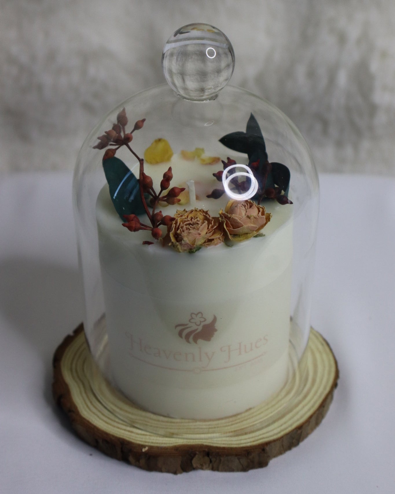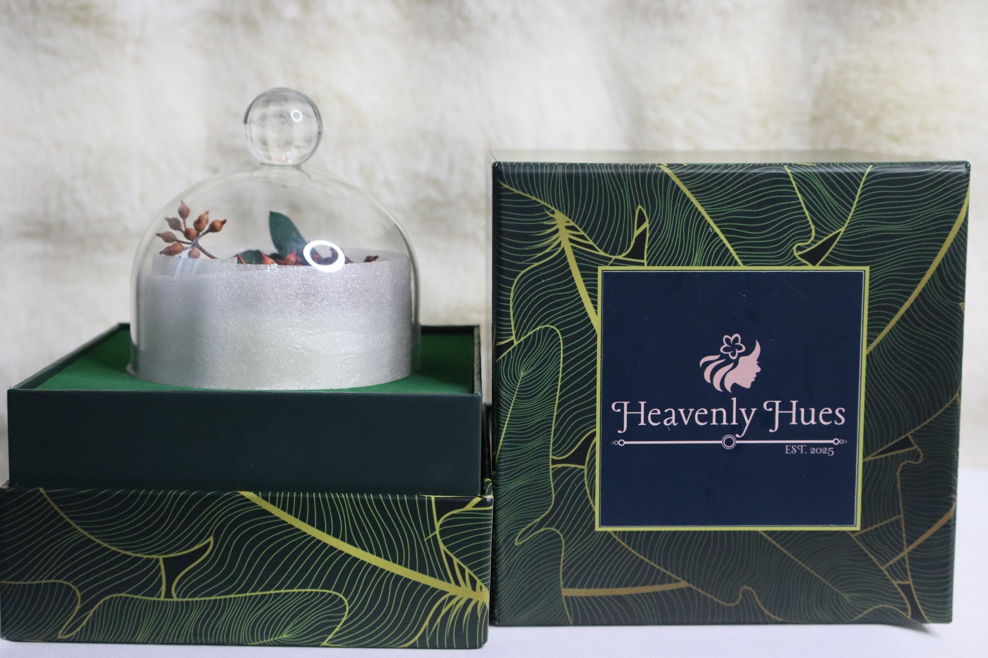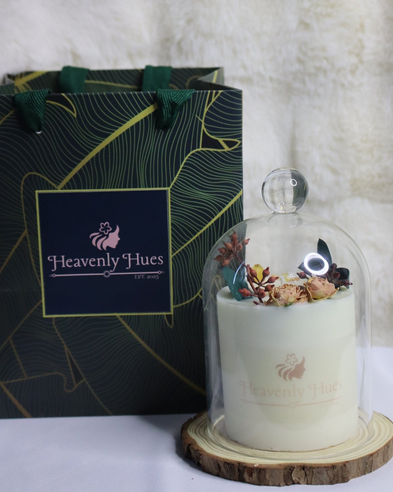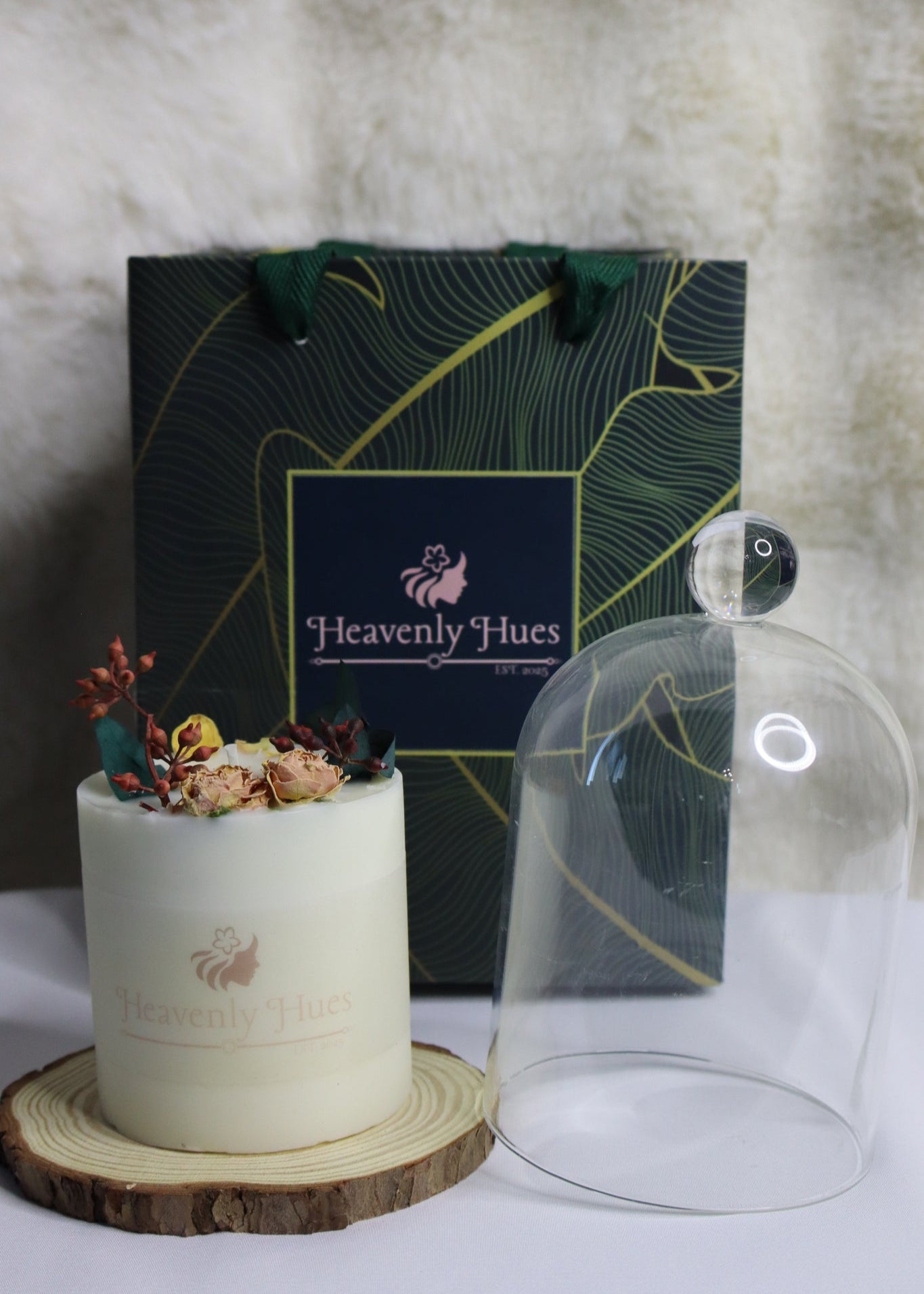 A timeless gift, crafted to charm. This beautifully presented set features a hand-poured soy candle adorned with dried botanicals, exuding both warmth and sophistication. Encased in a minimalist glass cloche and paired with our signature packaging, it’s a graceful addition to any space — and a perfect gesture for someone special.