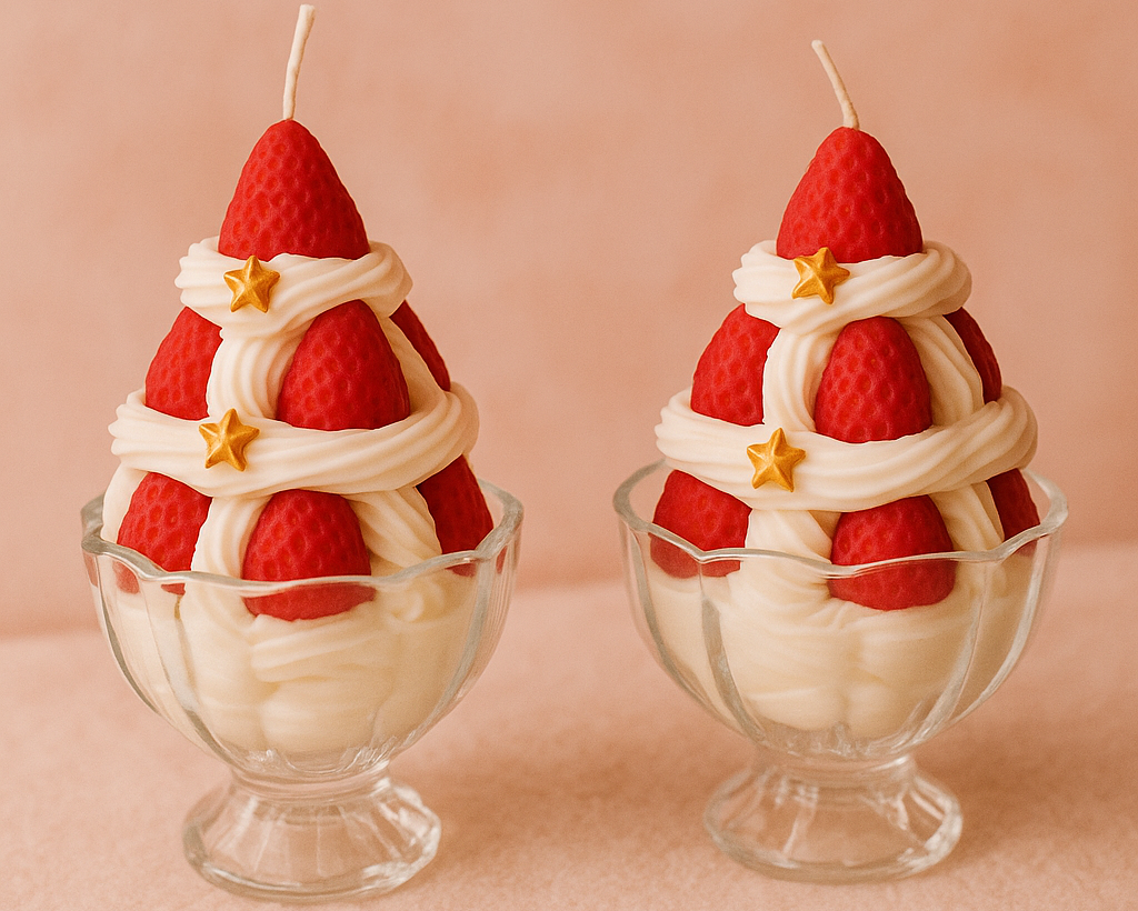 Enhance your space with the Strawberry Cream Candle (single piece), a sophisticated fusion of comfort and whimsical design. This tree-shaped creation showcases rich red strawberry-toned wax layers artfully intertwined with pristine white swirls resembling cream. Golden star accents complement the vintage glass dessert cup base, evoking nostalgic charm with contemporary appeal. Each handcrafted piece offers a distinctive aesthetic experience, while the illuminated flame creates an ambient glow ideal for intimate gatherings, holiday displays, or as a refined gift. Crafted with premium natural soy and beeswax, featuring a lead-free cotton wick and phthalate-free formulation for a superior, environmentally conscious burning experience.